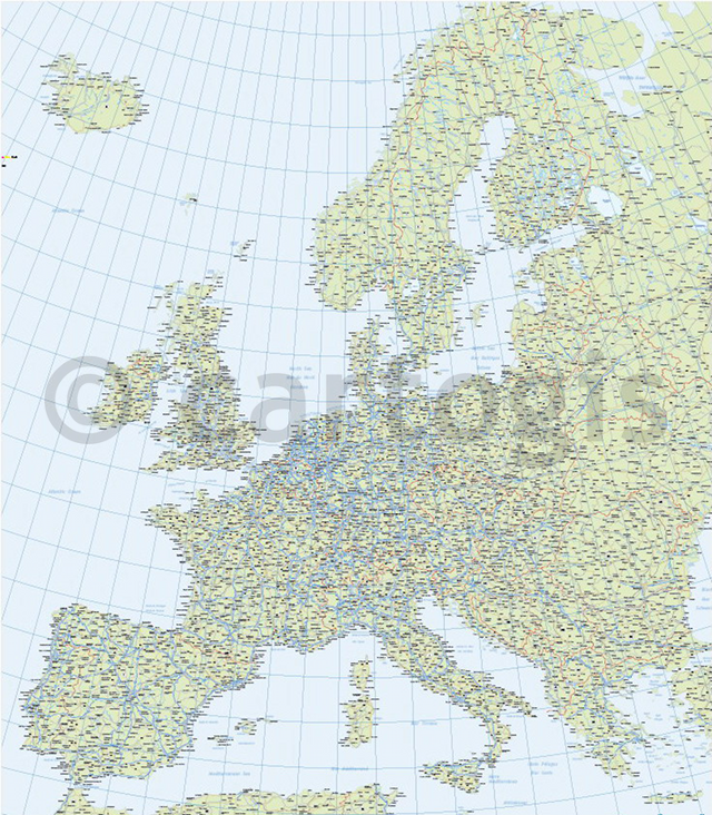 Straßenkarte von Europa im Vektorformat - verwendbar als Wandkarte und gleichzeitig als digitale Datei für individuelle Länderausschnitte |