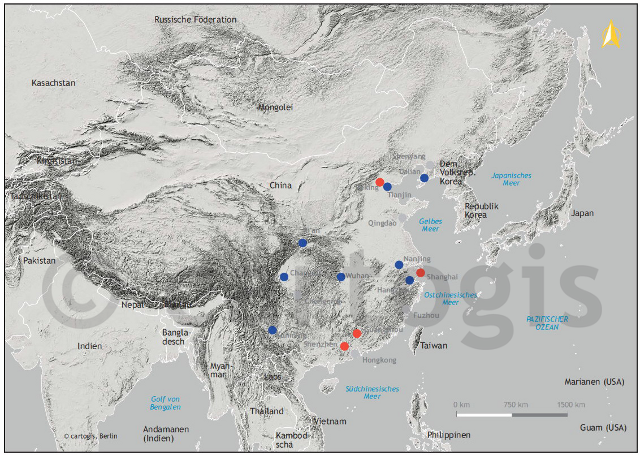 Eine Werbeagentur benötigt für die Titelseite einer Immobilienstudie ihres Kunden DEGI (Deutsche Gesellschaft für Immobilienfonds, jetzt Aberdeen Immobilien Kapitalanlagegesellschaft mbH) eine Reliefkarte des asiatischen Raumes. Wir erstellen, abgestimmt auf das Design der Studie, eine Reliefkarte im gewünschten Farbraum "silbergrau". Weiterhin werden die Standorte eingetragen, die in der Studie im Detail beschrieben werden.