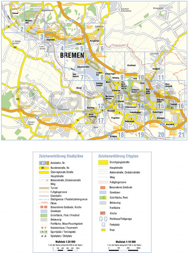 Stadtplan Bremen - Blattschnitt mit Legende (Zeichenerklärung) |