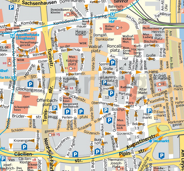 Innenstadtplan von Köln für einen Stadtführer von Kiepenheuer & Witsch