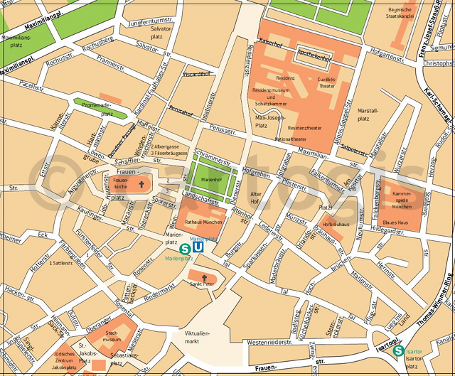 Ausschnittvergrösserung Stadtplan München mit Kundenschrift und Farbgebung nach Corporate Design/Corporate Manual: