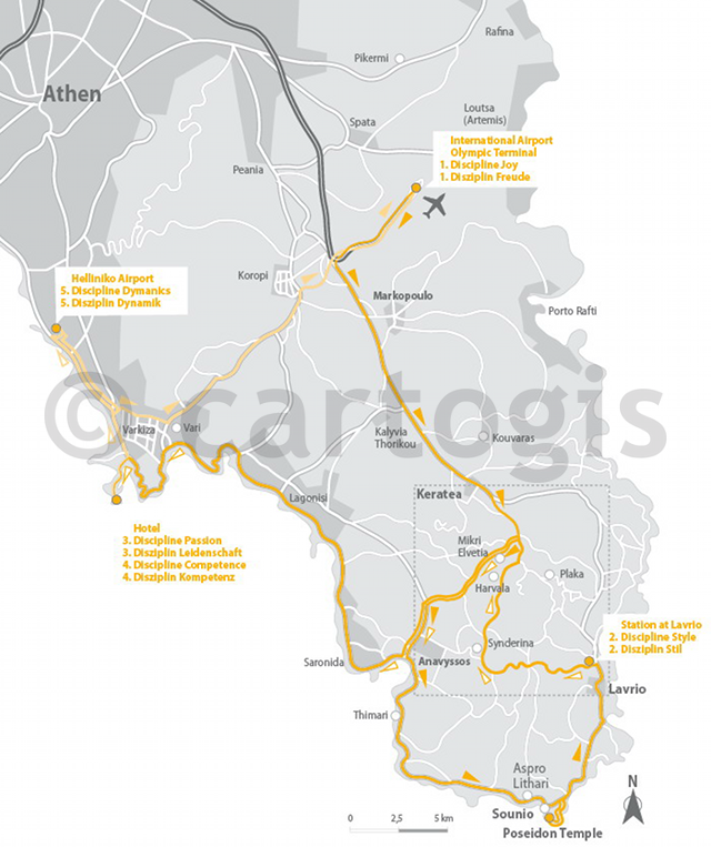 Der Automobilhersteller BMW veranstaltet für ein europäisches Händlertreffen eine Rallye zur Probefahrt des neuesten Automodells. Hierfür benötigte er eine Straßenkarte rund um Athen in Griechenland.